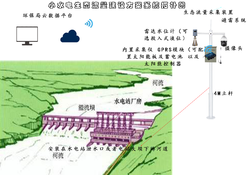 小型水電站生態流量遠程泄放監測系統建設自動采集設備,實時監測閘位、水位、流量、圖片及工況等數據。